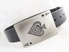 SKÓRZANY PAS WYKONANY ZE SKÓRY NATURALNEJ Z KLAMRĄ AS PIK WITH SKULLS.